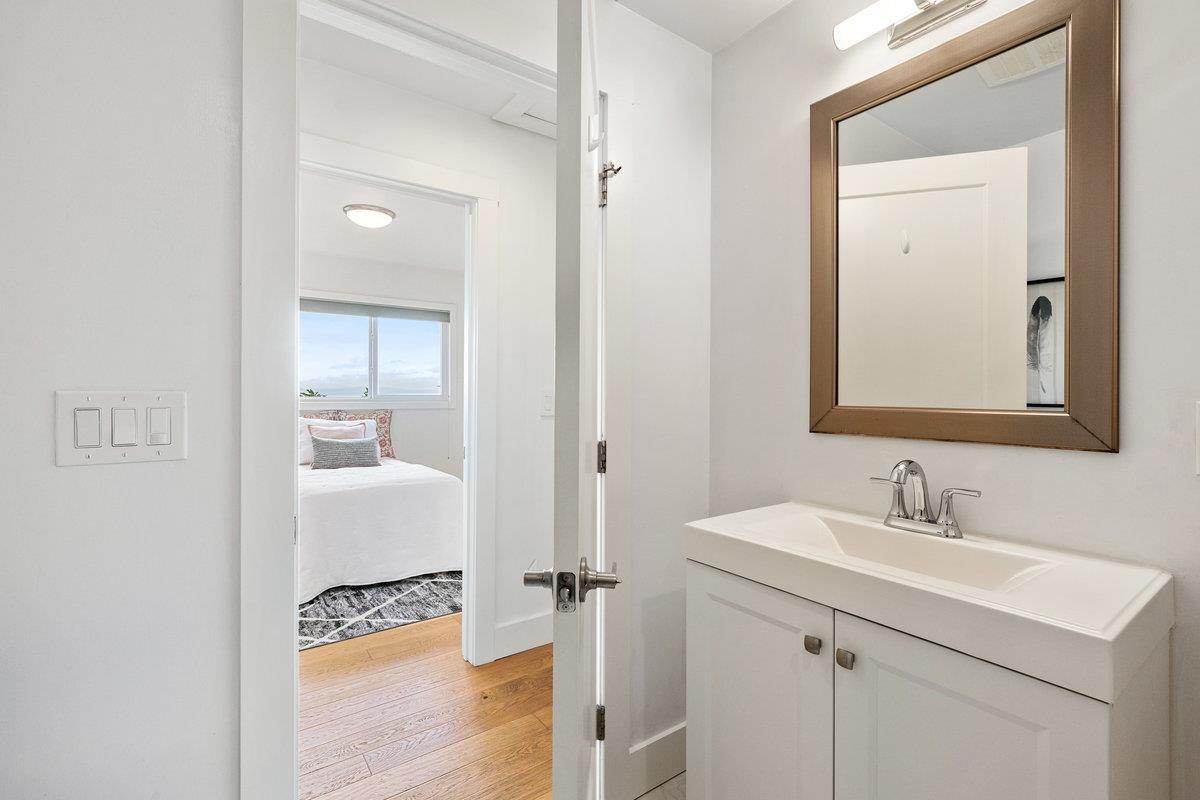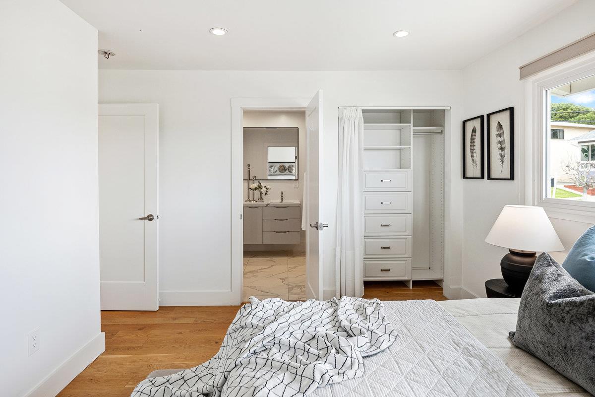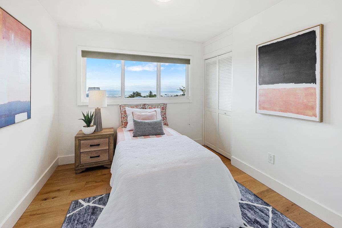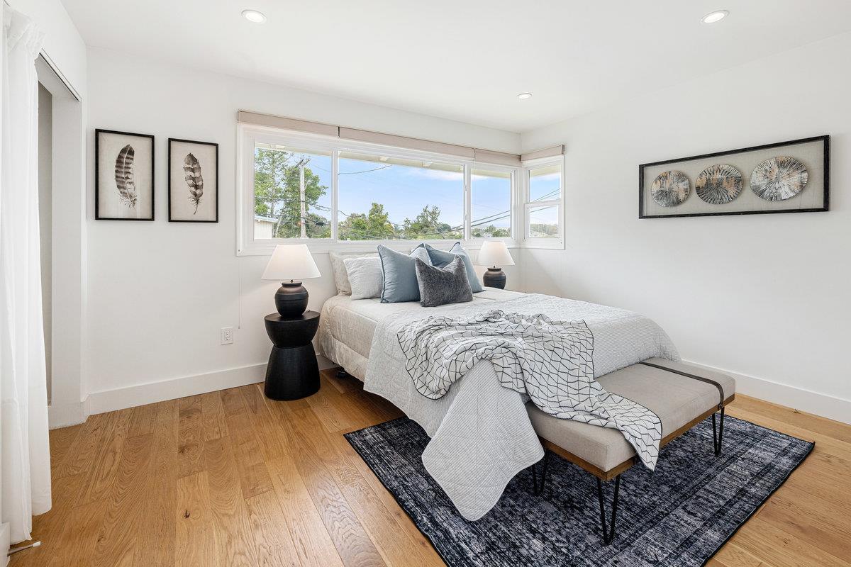Located in the desirable Crestmoor Park 3 neighborhood, 2491 Rosewood Drive is a stunning example of mid-century modern design, reimagined with chic contemporary finishes. This 3-bedroom, 2-bath home offers panoramic bay and airport views from nearly every room, creating a truly one-of-a-kind living experience. The spacious layout includes a finished basement with a flexible den or office space, while custom closets throughout the home provide exceptional storage. Newly landscaped front and rear yards elevate the curb appeal and offer a spectacular backyard setting, perfect for entertaining. With stylish updates, thoughtful details, and an unbeatable location, this home is Crestmoor living at its finest.